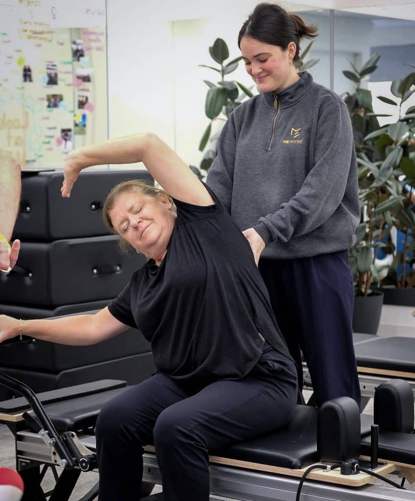 Sessions typically last 40 – 45 minutes and can be conducted one-on-one or in small groups, depending on your needs. You’ll use specialised Pilates equipment like the reformer, trapeze table, along with mat-based exercises. Your physiotherapist provides hands-on guidance, correcting your form and ensuring proper muscle activation.